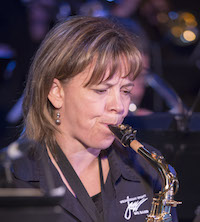 Dana Kaukinen — Bari Sax — Former member of the RCMP Big Band, loves to arrange songs featuring the Baritone Saxophone or Bass Trombone. Played bass trombone with us last year, bari sax the year before, bass trombone the year before that.